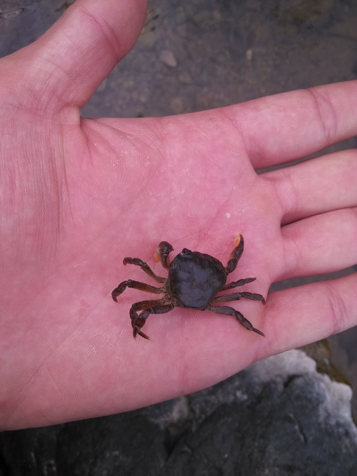 这时候都快中午了,在河里逮了一个螃蟹,也有鱼虾米,太小不好逮