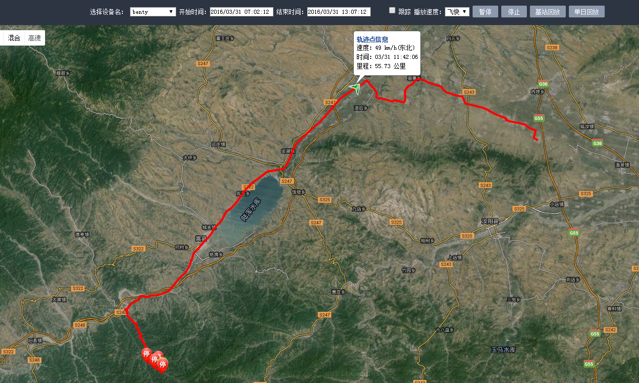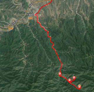 停的几个位置就是几个亲戚家,山里面信号不好,gps信号可能到里面的有些没显示出来,从北往南第一个停的位置是大王沟的小学村委会那,第二个是往我姨婆家去的那个路口,里面路土路还窄,第三个是我姨婆她家所在,第四个是我大姨家应该,其实还有我二姨家没显示出来,可能在前天的gps记录当中吧,还要再往里面走走。