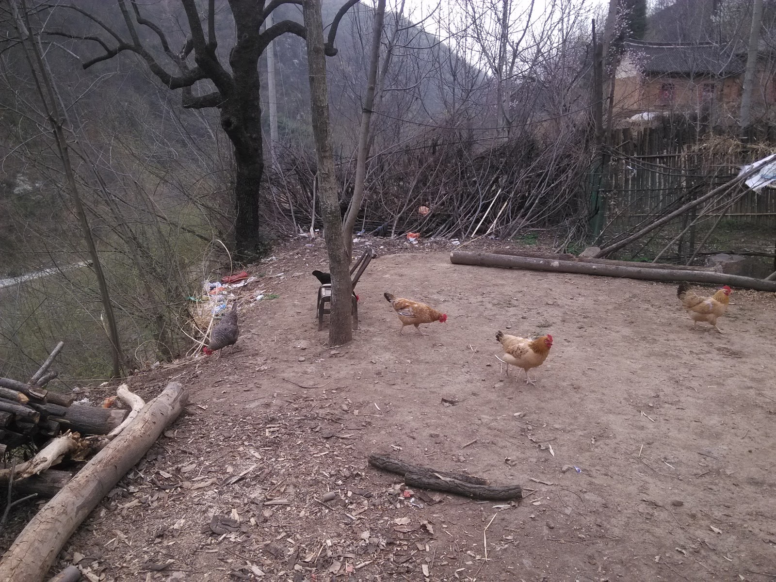 鸡吃东西的槽子都是手工做的,感觉真的是无忧无虑世外桃源了
